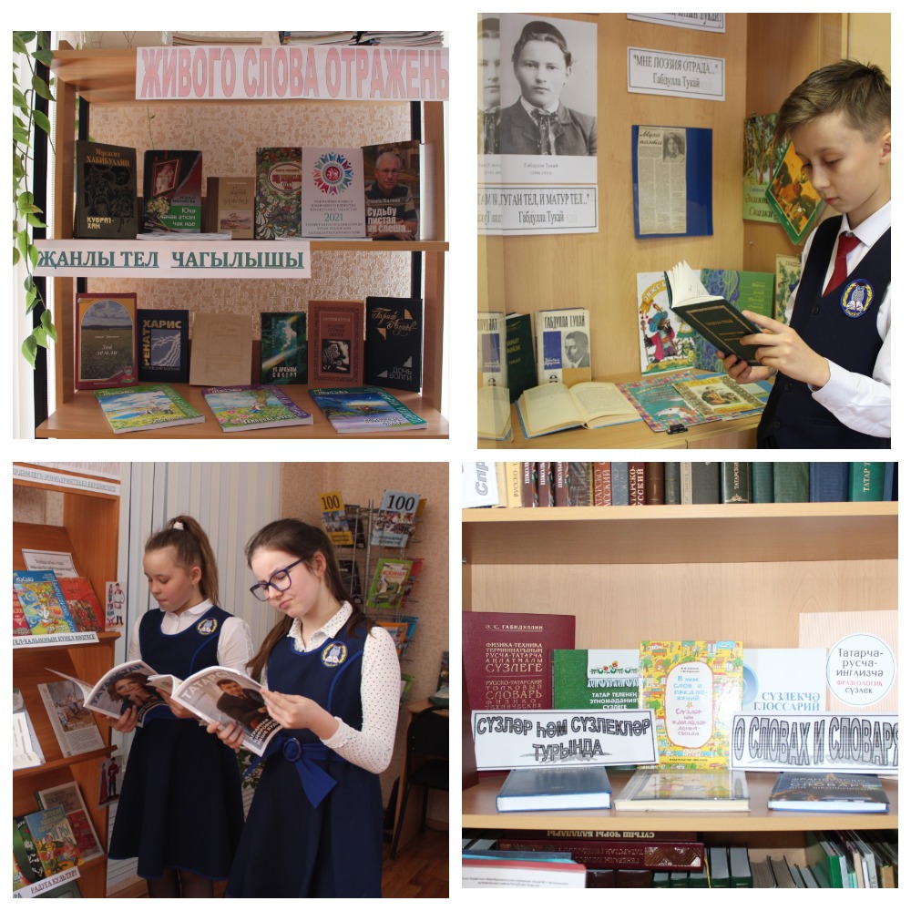 Опубликовано: 23.04.2021К 135-летию со дня рождения Г. Тукая оформлена выставка «Вечно живи, юный Тукай!». На ней представлены книги освещающие жизнь и творчество писателя, его произведения. Учащиеся с удовольствием знакомятся с биографией поэта, читают поучительные стихи и путешествуют по волшебному миру сказок автора.