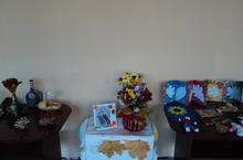 В школе организована выставка поделок силами самих учащихся. Каждый пытается показать своё мастерство в своих работах, посвященных грустному, но и пёстрому в своих проявлениях времени года.