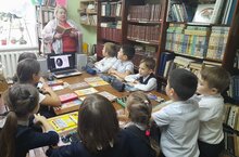 В школьной библиотеке был проведен библиотечный урок,где ученики ознакомились с биографией писателя, просмотрели сказку и нарисовали сказочных персонажей. -