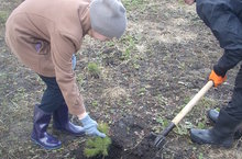 Учащиеся школы вышли на посадку деревьев и кустарников.