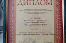 Учитель начальных классов Нуруллина Э.З. - лауреат муниципального этапа Всероссийского конкурса "Учитель года России" награждена Дипломом Начальника МКУ "Управления образования Исполнительного комитета ЧМР РТ" О.В.Купцовой. Поздравляем Эльвиру Зуфаровну! Желаем творческих успехов, профессионального роста.