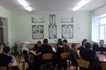 Татар теле һәм әдәбияты укытучылары тарафыннан кабинетта һәм фойеда тематик күргәзмәләр, стендлар, газеталар урнаштырылды.