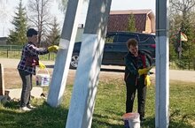 Сотрудники детского сада приняли участие в среднике по покраске столбов и бордюров на территории и за территорией детского сада