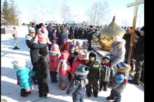 Дети побывали на торжественной церемонии освещения и воздвижения купола и креста на Церковь