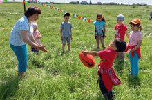 «Весёлые летние старты» прошли в разновозрастной группе. Дети показали свою ловкость, быстроту, силу, поупражнялись в прыжках на двух ногах с продвижением вперёд, в катании мяча по извилистой дорожке, ходьбе «змейкой», метании мячей в корзину.