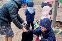 Сегодня воспитанники совместно с воспитателем наблюдали за первоцветами на нашем участке за мать- и- мачехой.