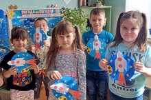 В рамках Дня Космонавтики в группе прошло занятие по аппликации "Космическая ракета" Прежде чем приступить к конструированию ракет, ребята рассмотрели иллюстрации о космосе, о планетах Солнечной системы, вспомнили о первом космонавте - Юрии Гагарине. Ребята с удовольствием выполняли работу - складывали из бумаги ракеты, аккуратно и последовательно наклеивали готовые детали аппликации.
