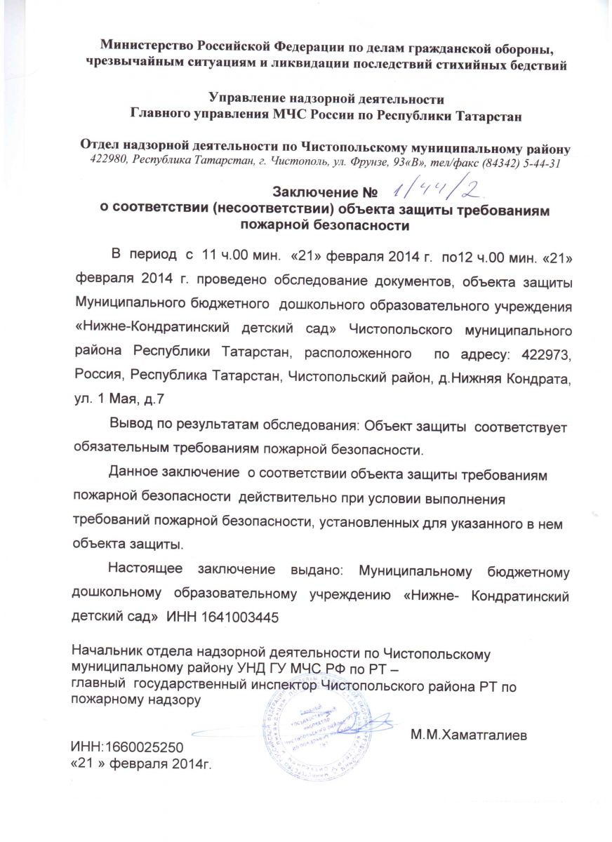 - Заключение о соответствии (несоответствии) объекта защиты требования пожарной безопасности