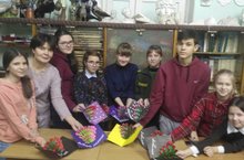 Леванова Ольга Владимировна познакомила детей с выполнением открытки в технике коллажа. Для выполнения работы ученики использовали картон, вырезки из журналов и газет. Целью для детей стало выполнение аппликации в виде букета цветов в вазе и дополнением его красивыми словами, пожеланиями для мамы. Сначала каждый подбирал для своих бутонов и стебельков определенный оттенок из журнальных картинок. Затем дети компоновали все главные элементы на картоне. Далее на бутоны приклеивались маленькие лепестки цветка, так же подобранные самостоятельно автором работы. Эффект был в том, что все элементы не вырезались ножницами, а форма создавалась путем обрывания бумаги. Ваза была изготовлена из газетных вырезок. Ну а слова и выражения дети подбирали каждый сам для своей мамы! Получились отличные подарки для мам! Дети работали с огромным удовольствием и каждый вложил частичку себя в свою работу. -