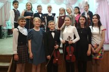 В концерте приняли участие скрипачи и пианисты - учащиеся разных классов. А открыло концерт «семейное» трио скрипачей - братьев Зариповых.