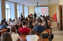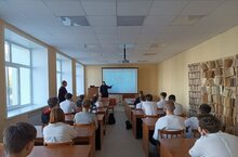 В читальном зале библиотеки для студентов 1 курса проводился Урок мужества. Представители союза Советских офицеров России Ахметшин Ю.Р., Галяув А.А. рассказали студентам о ценностях жизни, о героях России. Урок для подростков был содержательным и поучительным.