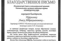 Коллективу техникума в лице директора Нуруллина Анаса Абдрахмановича вручено Благодарственное письмо. Открытие родника «Торна сазы» состоялось 26 октября после реконструкции, где техникум принимал участие в качестве партнера проекта. Родник был реконструирован и оборудован на средства Гранта Республики Татарстан на развитие гражданского общества 2023 г.