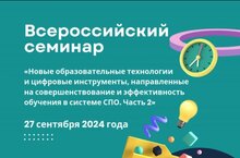 27 сентября 2024 года в формате онлайн состоялся Всероссийский семинар для преподавателей общеобразовательных дисциплин в системе СПО на тему «Новые образовательные технологии и цифровые инструменты, направленные на совершенствование и эффективность обучения в системе СПО. Часть 2».