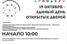 19 октября на базе ГАПОУ "Чистопольский сельскохозяйственный техникум имени Г.И. Усманова" будет оранизован Единый день открытых дверей. Приглашаем родителей, школьников на меоприятия, которые будут организованы для вас.