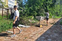 В рамках летней отработки студенты первого курса занимаются благоустройством территории техникума.