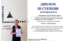 25 января на базе ГАПОУ " Нурлатский аграрный техникум" в рамках Республиканского конкурса "С малой Родины моей начинается Россия", для педагогических работников был организован конкурс Методических разработок " Семья- душа России". Преподаватель Саматова Л. К. принята участие в этом конкурсе и была награждена Дипломом 3 степени.