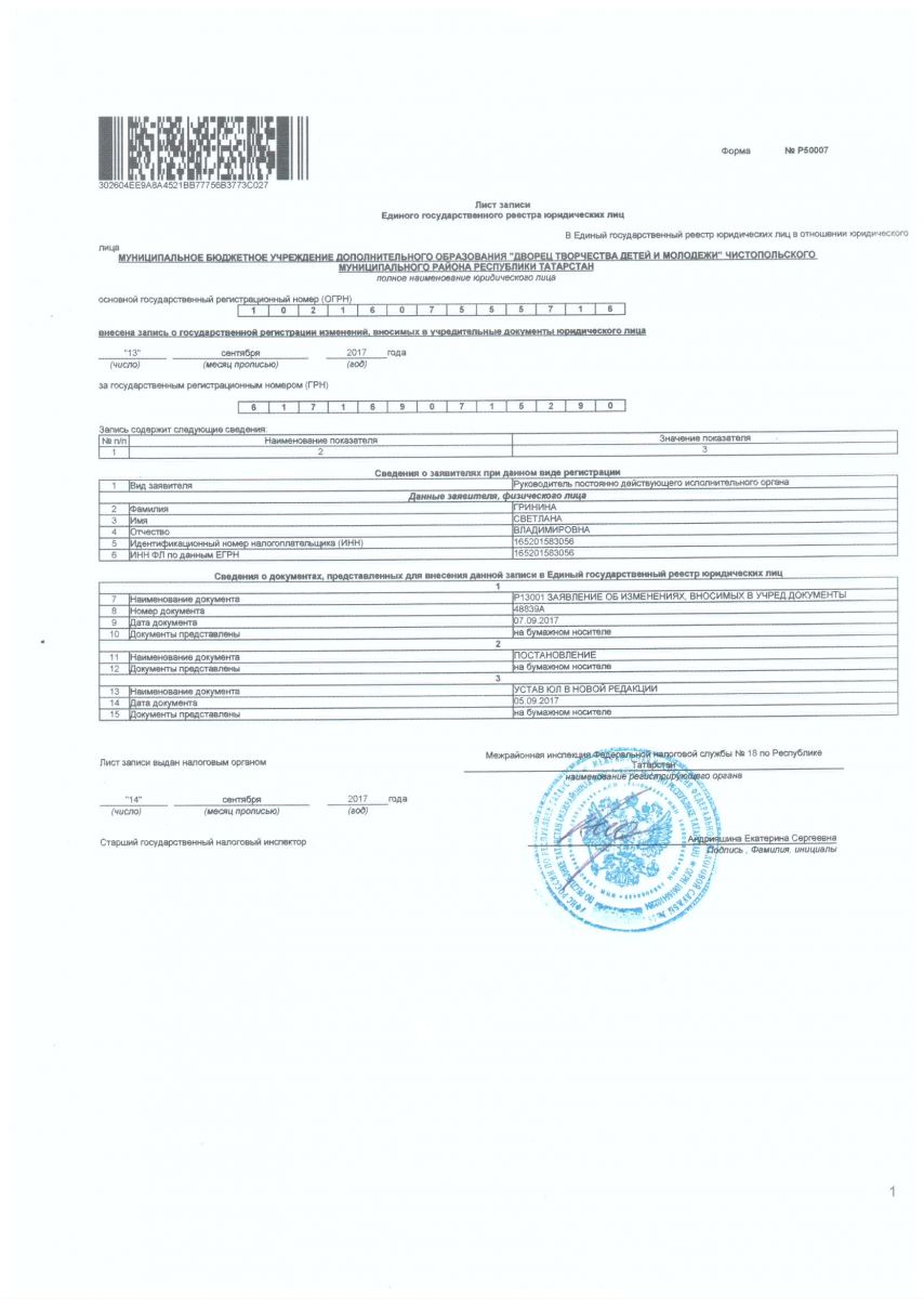 Муниципальное бюджетное учреждение дополнительного образования «Дворец творчества детей и молодежи» Чистопольского муниципального района Республики Татарстан/Татарстан Республикасы Чистай муниципаль районының «Балалар һәм яшьләр иҗаты сарае " Муниципаль бюджет өстәмә белем бирү учреждениесе