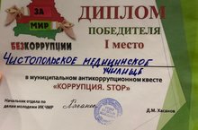 21 ноября 2019 г. студенты Чистопольского медицинского училища приняли участие а Антикоррупционном квесте для студентов ССУЗов и ВУЗов г. Чистополь. На квесте присутствовали старший помощник прокурора г. Чистополь Радик Салихов. По итогам мероприятия наша команда стала победителем! Поздравляем ребят!