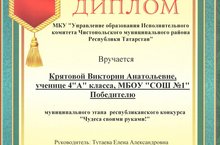 Крятова А.В. победитель муниципального этапа республиканского конкурса "Чудеса своими руками"
