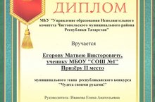 Егоров М.В. призер муниципального этапа республиканского конкурса "Чудеса своими руками"