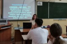 Продолжается работа по профориентации с учащимися 9-х классов. На данной встрече были рассмотрены такие понятия как, виды профессий: человека-человек, человек -техника, человек-природа, человек-искусство, человека-знаковая система.