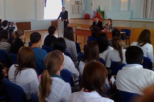 Профориентационная встреча учащихся 10-11 классов с участием заместителя руководителя Главы муниципального образования М.И. Ксенофонтовым, заместителем начальника МКУ "Управление образования" ИК ЧМР" Новиковой И.А., главным врачом города и Чистопольского муниципального района В.Х.Хамитовым с приглашением студентов Казанского государственного медицинского университета Министерства здравоохранения РТ.