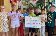 «Привет! А ты с нами?!» Под таким девизом прошла акция за здоровый образ жизни в пришкольном лагере «Здоровячок!», педагог-психолог, Ерашова А.В., рассказала ребятам о полезных привычках, о правильном распорядке дня.