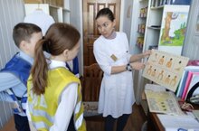 В рамках подготовки к муниципальному этапу Всероссийского конкурса "Безопасное колесо" участники отряда ЮИД "Клаксон" совместно с медицинской сестрой школы провели занятие "Оказание первой доврачебной медицинской помощи"