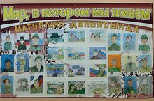 Выставка рисунков посвящена я к году «Защитника отечества» - «Так выглядит защитник в моих глазах»
