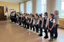 Право поднять флаги предоставилось ученикам 9А класса Мокееву Егору и Гайсину Василю. -