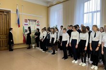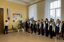 Учащиеся и учителя начали неделю с исполнения гимнов.