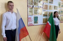 В школе подняли два флага: Государственный флаг Российской Федерации и государственный флаг Республики Татарстан с озвучиванием мелодий гимнов России и Татарстана. -