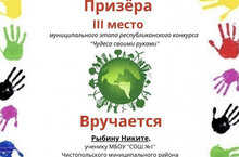 Диплом призёр муниципального этапа республиканского этапа республиканского конкурса «Чудеса своими руками» Рыбин Никита