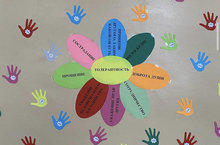 Ко Дню Толерантности учащиеся 6 «А» и 9 «Б» класса подготовили стену толерантности, целью которой является напоминание учащимся что такое толерантность