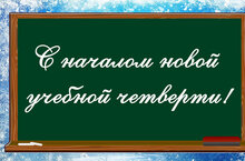 Закончились новогодние праздники, получены подарки, загаданы желания... Началась третья учебная четверть! И эта четверть самая длинная, самая яркая и активная. Трудолюбия и усердия,удачи и успехов всем, чтобы учеба давалась легко и приносила истинное наслаждение! И пусть все дела и поступки будут только на "отлично" и "хорошо". Поздравляем с началом новой 3-ей четверти!
