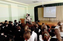 Выступление руководителя отряда "Выстрел" перед учащимися школы 22.02.2014