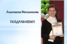 Нашу школу представляла ученица 9"А" класса Меньшикова Анастасия, которая стала Лауреатом этого конкурса. Поздравляем! Молодец!