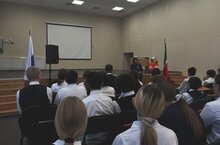 Встреча с заместителем прокурора города Чистополя 11.11.2025 В рамках образовательной программы для учащихся 7-8 классов прошла увлекательная и полезная встреча с Ленарой Рустемовной Гибадуллиной, заместителем Чистопольского городского прокурора Республики Татарстан о «Возрастной ответственности и опасностях интернета». Она рассказала, когда подростки отвечают по закону, что такое преступление и как важно соблюдать правила. Обсудили защиту данных, мошенничество и опасные схемы. Это помогает понять важность закона и безопасности.