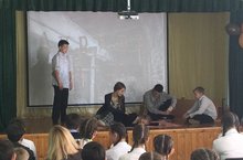 Спектакль «Апрель 45-го». 08.05.2019 Сегодня учащиеся старших классов показали драматический спектакль по пьесе Андрея Гуркова «Апрель 45-го». Спектакль никого не оставил равнодушным. Многие зрители не смогли сдержать слез, узнав о трагической судьбе детей, узников концентрационного лагеря, и их самоотверженности, несломленной воле, жажде жизни и самопожертвованию ради других.