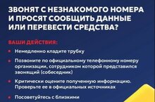 Вам звонят с незнакомого номера и просят сообщить данные или перевести стредства? 03.08.2025 Вам звонят с незнакомого номера и просят: ✔ сообщить личные данные (паспорт, карту, пароли); ✔ «подтвердить» что-то по СМС; ✔ срочно перевести деньги. Что делать? ❌ Не называйте никаких данных! ❌ Не переводите деньги! ❌ Не нажимайте на ссылки из СМС. ✅ Положите трубку и перезвоните в официальную организацию (банк, МФО и т. д.) по номеру с официального сайта. ✅ Если угрожают — сразу в полицию (112 или 102). ???? Помните: настоящие сотрудники никогда не спрашивают пароли и не требуют переводы!