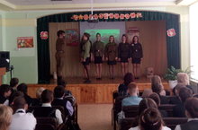 Сегодня силами учащихся был проведен праздничный концерт посвященный 70-летию Великой Победы. Прозвучали песни военных лет. Учащиеся 6-9 классов подготовили театрализованную постановку "А зори здесь тихие".