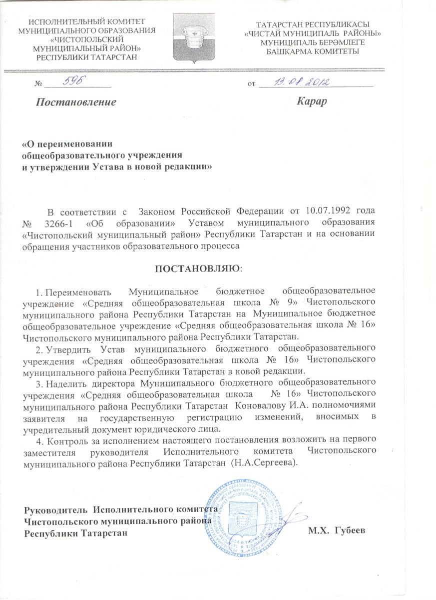 Муниципальное бюджетное общеобразовательное учреждение «Средняя общеобразовательная школа №16» Чистопольского муниципального района Республики Татарстан/Татарстан Республикасы Чистай муниципаль районы "16 нчы урта гомуми белем бирү мәктәбе" муниципаль бюджет гомуми белем учреждениесе