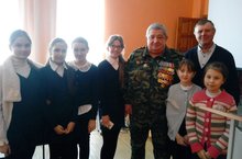17 февраля в рамках Урока мужества с учащимися 5-х классов состоялась встреча с ветераном войны в Афганистане Хайровым О.Х., который рассказал ребятам о себе, о том, как было тяжело в те времена. В конце встречи ребята задавали интересующие их вопросы.