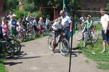 В пришкольном лагере "Краски лета" продолжается работа по безопасным каникулам. Дети активно участвовали в велокроссе, фигурном вождении на велосипедах.