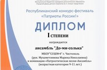 Поздравляем Ансамбль "До-ми-солька" с 1 местом в Республиканском конкурсе фестиваль "Патриоты России!"