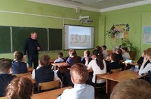 В школе была организована встреча с членом поискового отряда "Выстрел" Сабировым Н.В. Он поведал ребятам об исторических фактах Великой Отечественной войны, рассказал о работе поискового отряда. Продемонстрировал оружия, найденные во время раскопок и дал им характеристику. -
