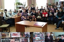 На урок была приглашена ветеран педагогического труда, поэтесса, лауреат литературной премии им.Кояш Тимбиковой Мира Ивановна Максимова. Мира Ивановна рассказала о героях земляках, о четырех книгах «Солдаты Победы», прочитала свои стихи и ответила на вопросы детей. Библиотекарь Елена Быкова сделала обзор патриотических книг чистопольских поэтов, прочитала свое стихотворение «Память». Детям были представлены книги о героях войны. Школьный библиотекарь Ольга Леонидовна Жильцова оформила книжную выставку «75 героических страниц» и провела ее презентацию.
