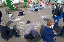 В сквере "Любви и согласия" ко дню рождения Г. Тукая была организована викторина по творчеству поэта и конкурс рисунков на асфальте. Учащиеся 3в класса приняли активно участие. -
