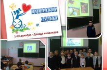В 1в классе прошел классный час на тему "Урок доброты", посвященный Международному Дню инвалидов. Первоклассники познакомились с проблемами детей инвалидов, обсудили отношение к здоровью как ценности человеческой жизни.