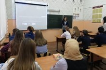 9 нчы сыйныф укучылары КИУ (ИЭУП) директоры Добронравова О. В. белән очраштылар. Ул укучыларны уку учреждениесе, кабул итү шартлары белән таныштырды.